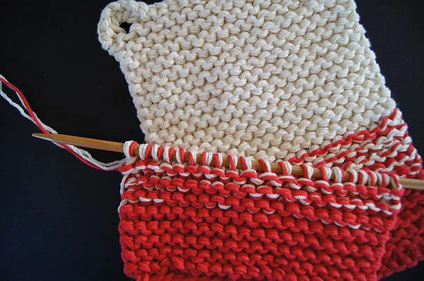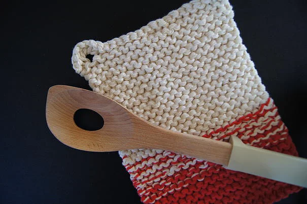 I knitted these thick pot holders based on a Drops Design pattern that is free to download from www.garnstudio.com.