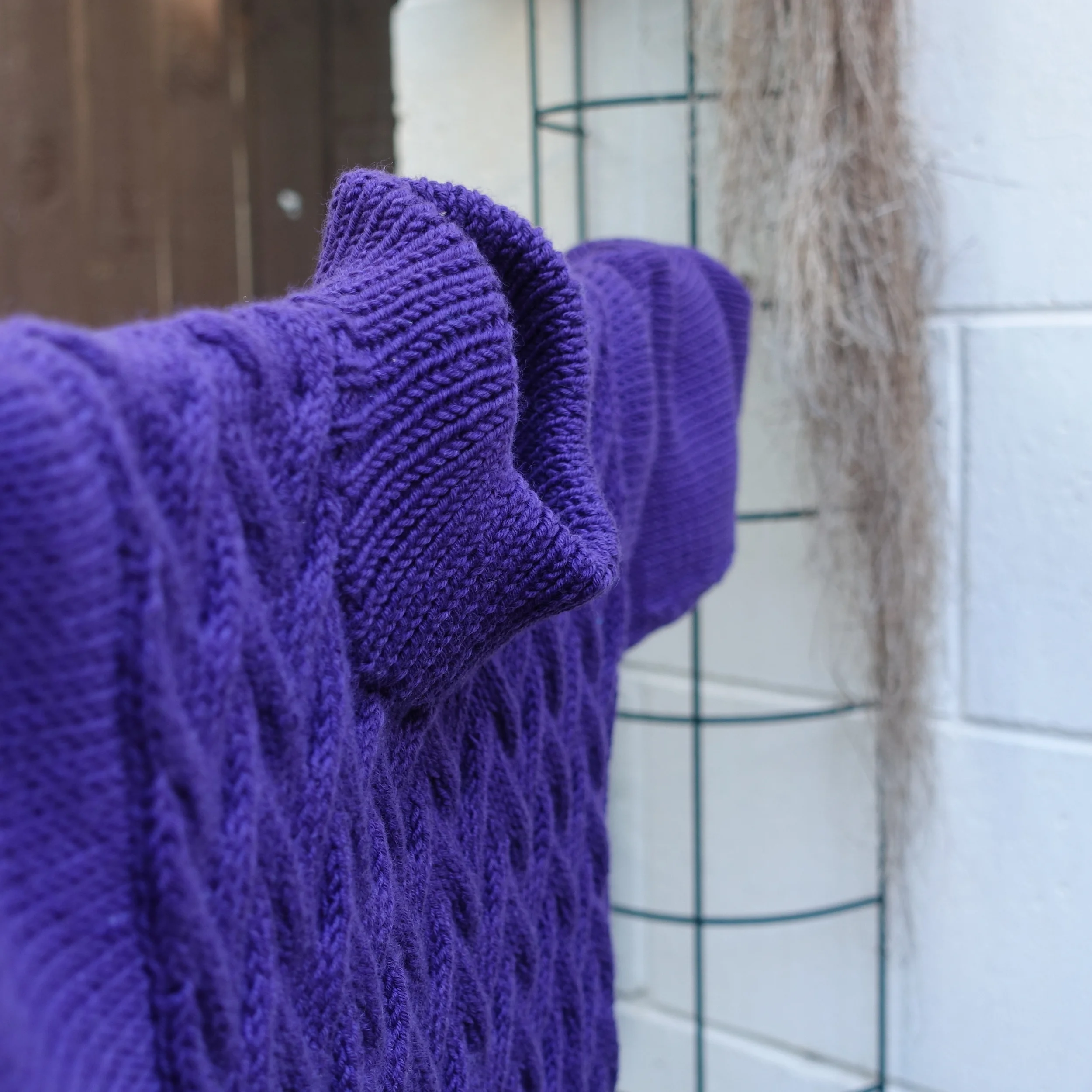 The cable pattern is only knitted on the front piece. The turtle cowl neck is double and soft
